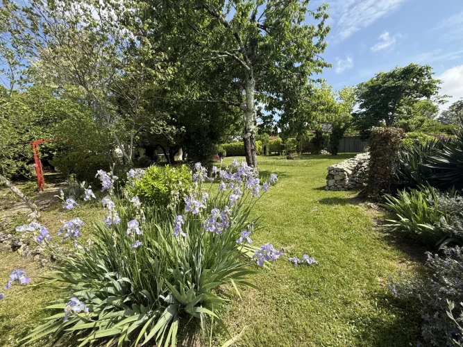 The gardens of approximately 1000 m² (1/4 of an acre) are planted with flowering shrubs, perennials and bulbs. Well established trees include walnut, maple, fig and cherry.