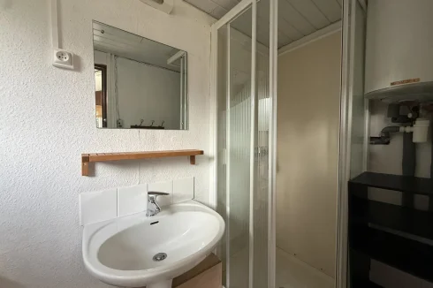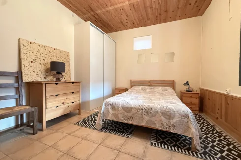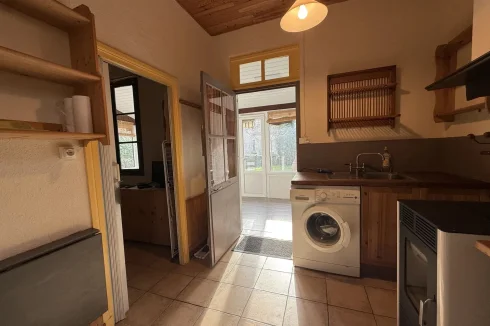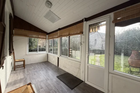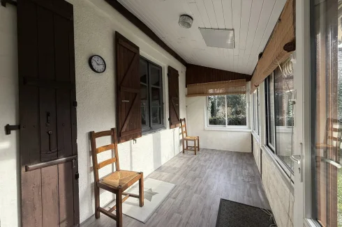 The property includes a veranda, a shower room with a WC, a kitchen equipped with a pellet burner and one bedroom.