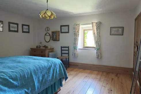 The farmhouse guest house has a hallway leading into a cosy sitting room and a kitchen/diner which has a separate sizeable butler’s kitchen. From the entrance hall, wooden stairs lead to a generous sized bedroom with an en suite, a small bedroom and a linen room. Further stairs lead to the attic bedroom which has its own toilet and an attached space ripe for development into a shower/bathroom. The guest house has its own private, pretty garden with views of the fields beyond.