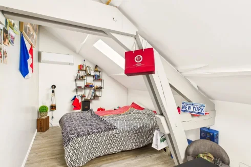 Outside, there's a charming workshop, a lovely outdoor dining space with an open garage, and a partially equipped summer kitchen. The brand-new swimming pool is surrounded by a beautiful garden, perfect for growing plants and vegetables, adding to the property’s rustic, countryside appeal.