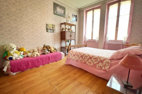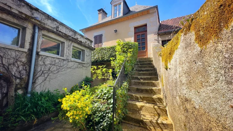 Located at the entrance to the Old Town of Boussac near all amenities, the main building leads across a lovely courtyard with additional access from a quiet lane to the side, to a charming one-bedroom guest house. This guest house features a spacious sunroom/veranda opening onto a generous private elevated garden, complete with a vegetable plot and swimming pool.