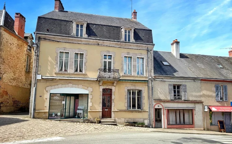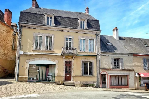 This handsome former pharmacy presents a fantastic opportunity as a large family home with an additional guest house (possible gîte, subject to permission). It also offers the potential to adapt or utilise the practical commercial space with its period wooden shop fittings.