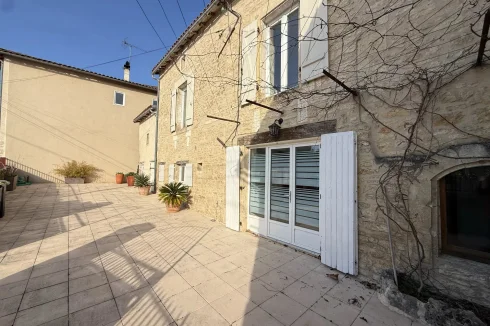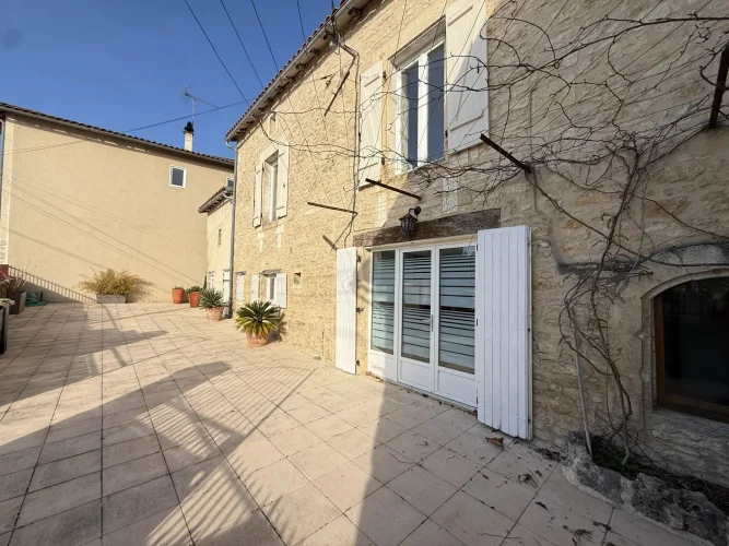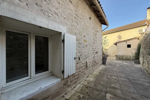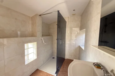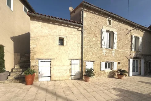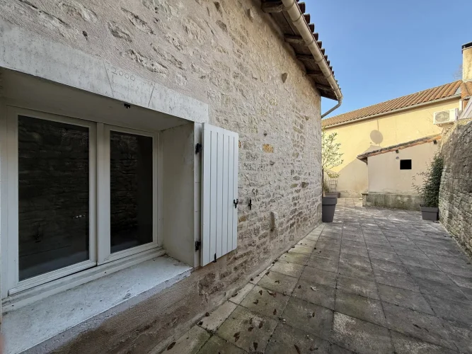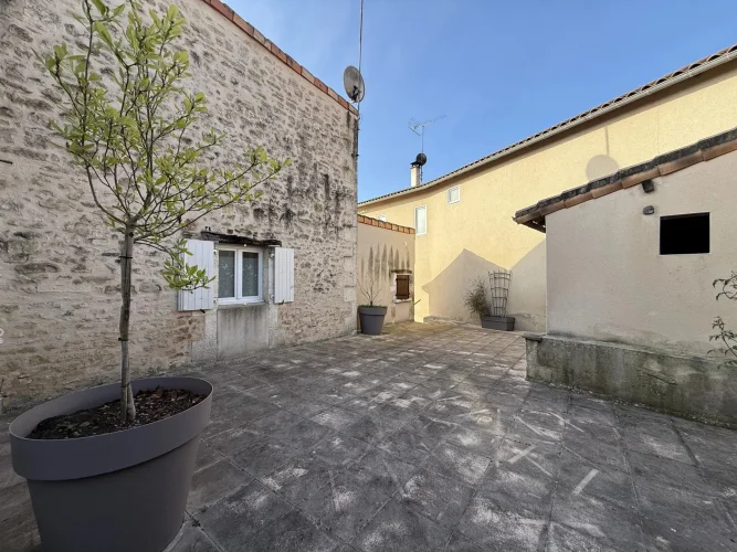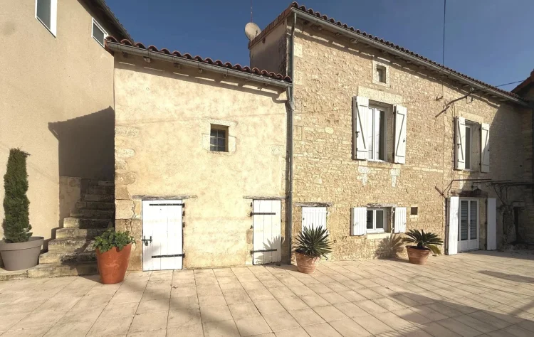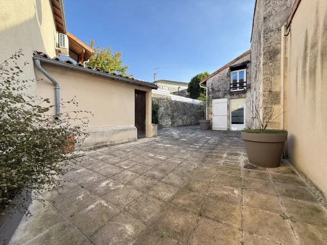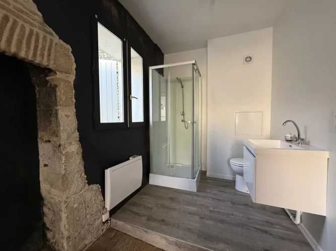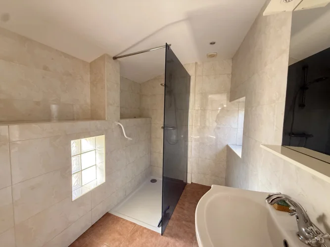 The first floor includes a large bedroom that can be transformed into a living room with a fireplace, providing direct access to the courtyard at the back of the property. This floor also contains a shower room/WC and another en suite bedroom.