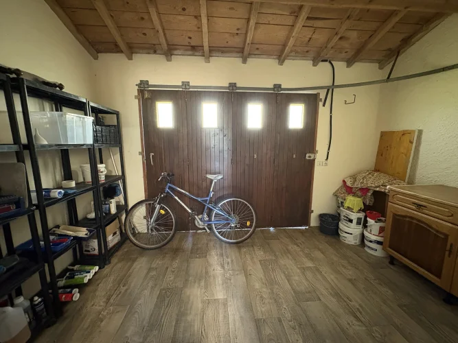The home features a bright open-plan living area with a fully fitted kitchen, leading to two bedrooms, a WC, and a shower room. Adjoining this space is a versatile office with a mezzanine area, along with two additional bedrooms that could easily be transformed into a self-contained guest annex with its own private entrance.
