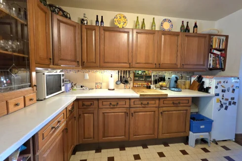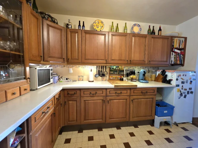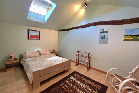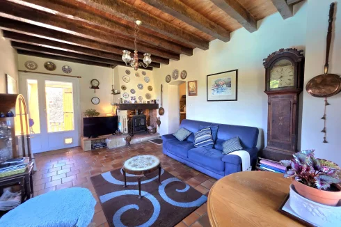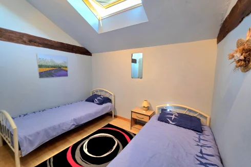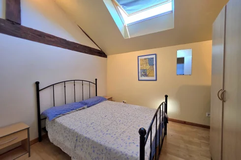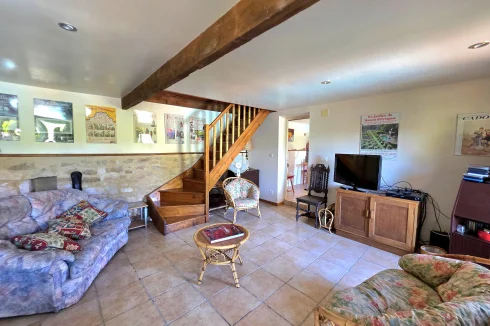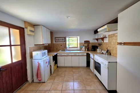 The guest house has doors into the kitchen or living room on the ground floor, with terrace overlooking the pool. Upstairs, there are 3 double bedrooms, with velux windows, a separate WC and shower room.