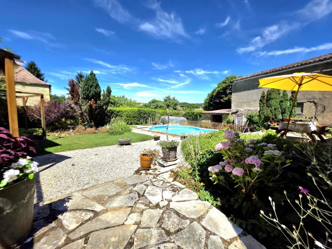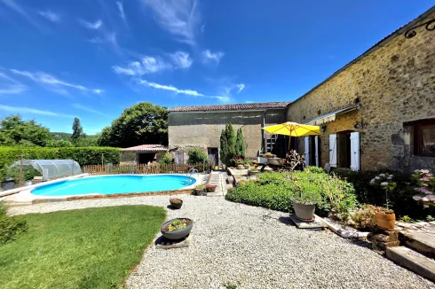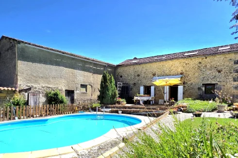 We are delighted to offer this stone property with guest house, large barn and pool.
