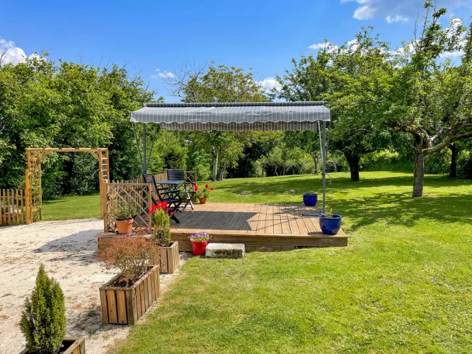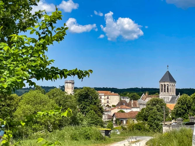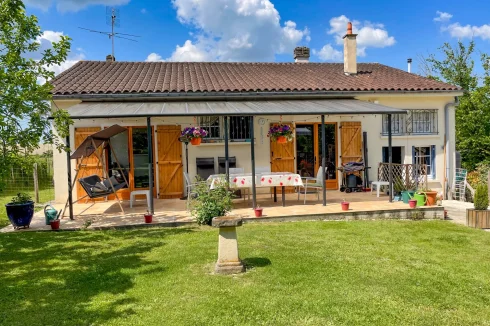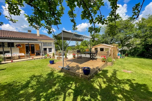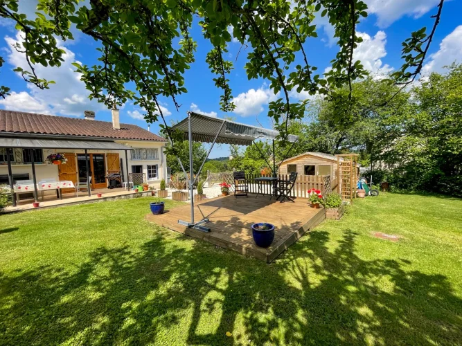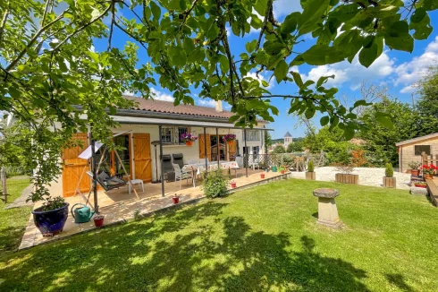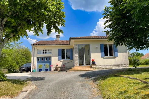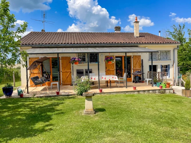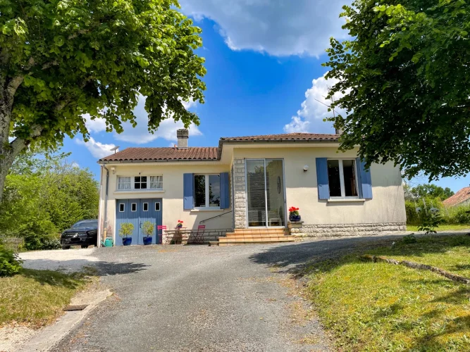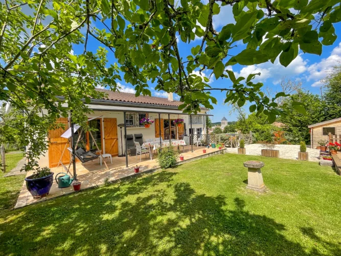 Situated on the edge of the beautiful medieval village of Bourdeilles, in the Perigord Vert region of Dordogne, is this attractive, detached property on one level. The house itself is set back from a quiet lane with ample parking at the top of the driveway for multiple vehicles and space for a camper van outside.