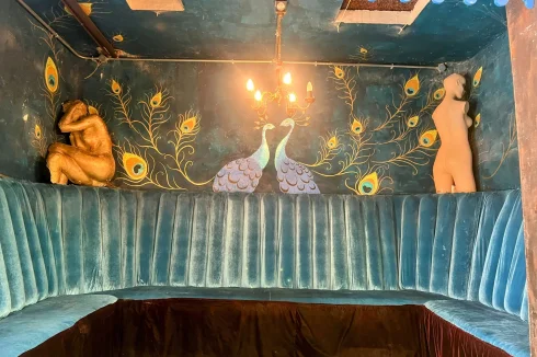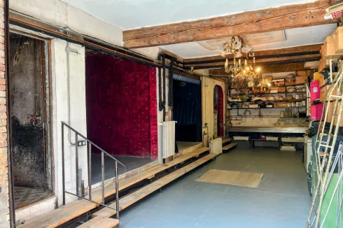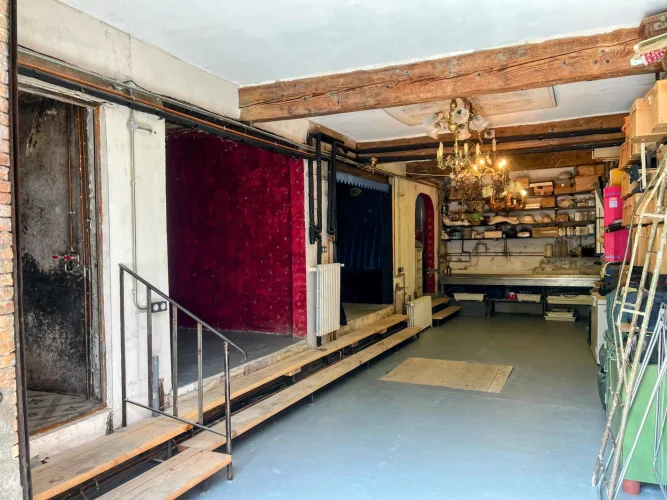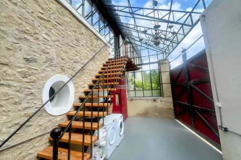 The lower level includes a generous atelier or studio space accessed via an atrium-style rear entrance with double sliding doors wide enough for a vehicle. This level also features four original wine cuves that have been imaginatively repurposed into a shower room, two Japanese-style sleeping pods and additional storage.