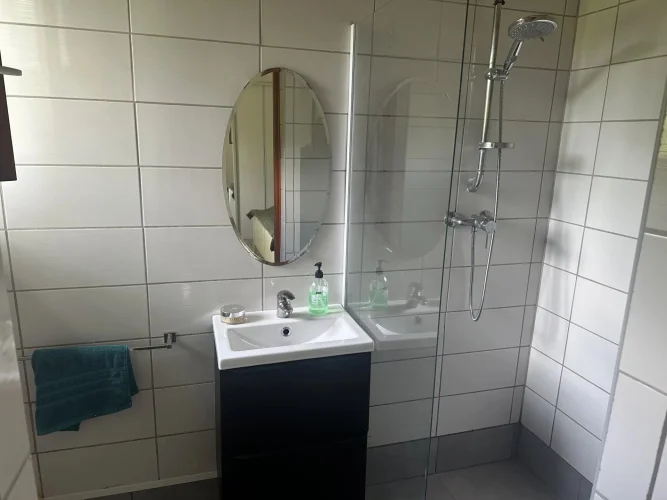 A striking glazed entrance hall welcomes you into the home, with double doors leading into the kitchen/breakfast room, a comfortable sitting room, and a large third bedroom—ideal for use as a formal dining room if desired. From the sitting room, glazed doors open onto a balcony that overlooks the generous gardens, providing a peaceful spot to relax or entertain.