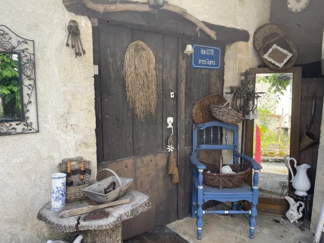 Across the courtyard lies a large workshop, currently used for a vintage business, but easily adaptable for a variety of uses—studio, workshop or home office.