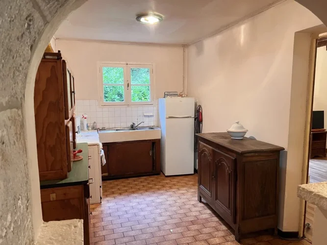 The main house needs complete refurbishment and modernisation, but with 145m² habitable, it currently affords 5 bedrooms, one bathroom/WC, a large dining room with open fireplace, a kitchen, a salon and a bureau.