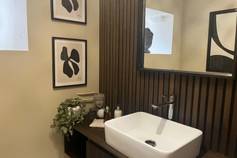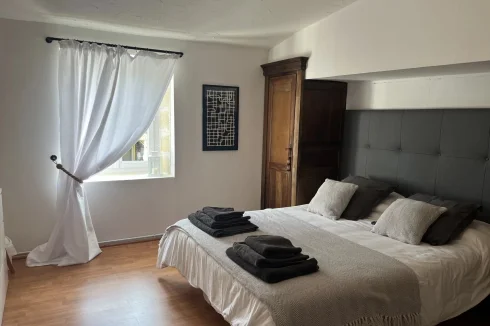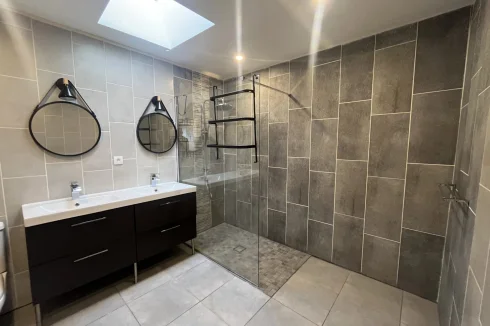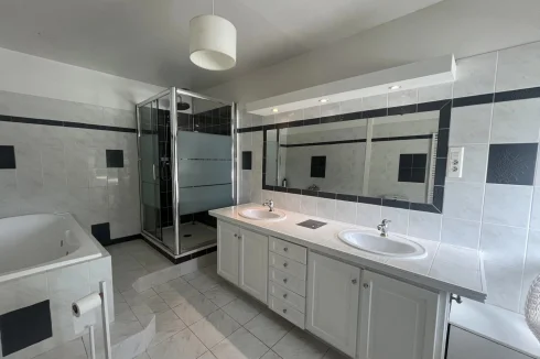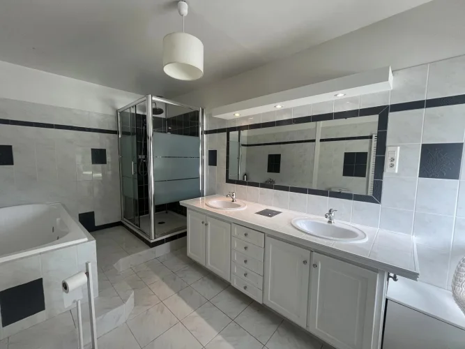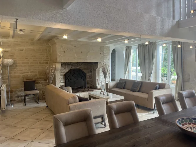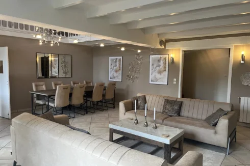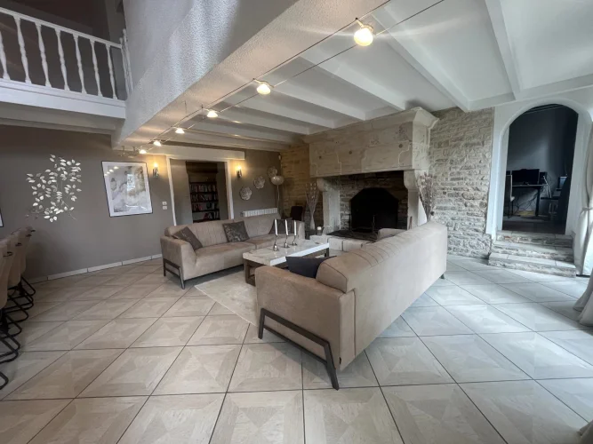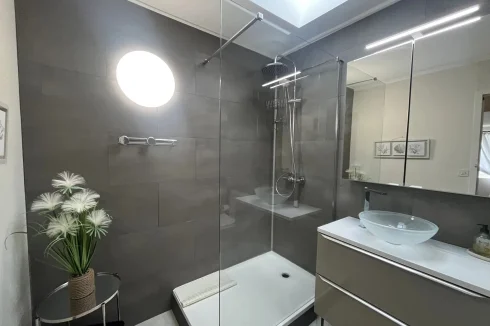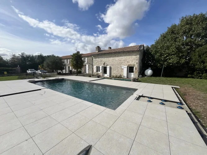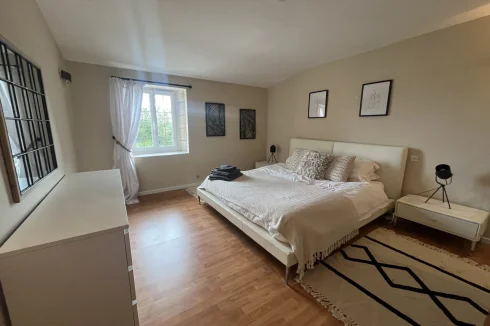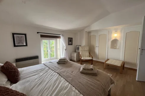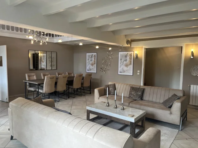 Outside, the newly installed heated pool enjoys a prime spot in the garden, with a large area for sun loungers. The terrace and pergola provide yet another space for socializing or simply sitting quietly, eyes closed, soaking in the sunlight.