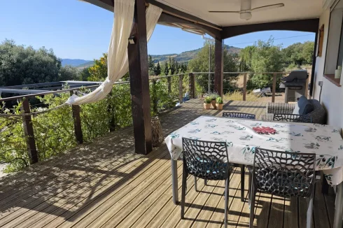 The house is insulated and double glazed throughout with electric shutters to almost every window. Heating is via a woodburning stove in the living room backed-up by electric radiators.