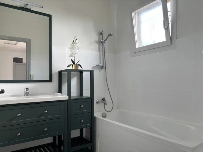 The house features high-performance double glazing, a new air/water heat pump and a fully equipped kitchen.