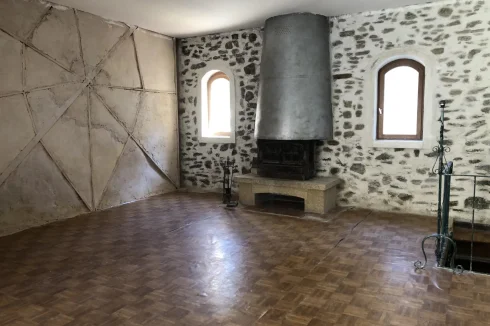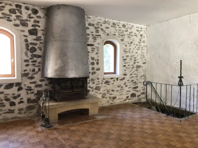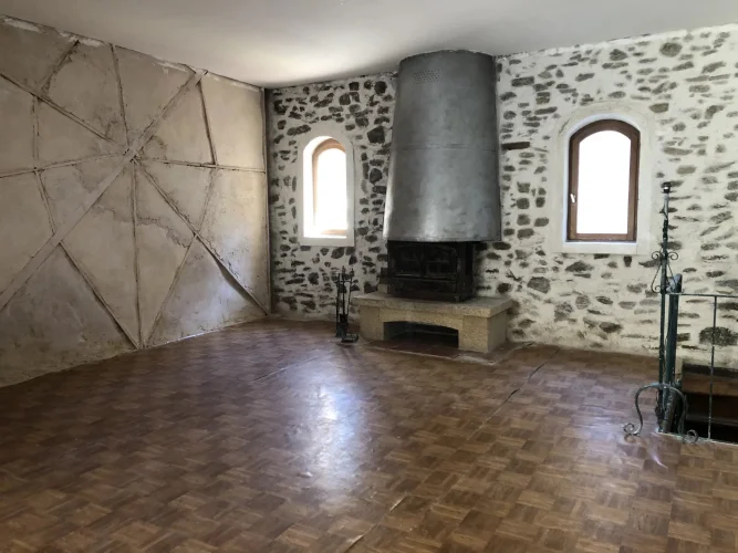 On the ground floor you have a sitting room, kitchen, shower room and WC. You also have a vast garage with 2 cellars and a bathroom, from here there are stairs up to the large living space on the first floor. On the first floor you have 2 bedrooms, a veranda, a terrace and from the veranda you go into the large living space. In this room is a feature fireplace (and stairs down to the garage). The second floor, you have an attic and a bedroom.