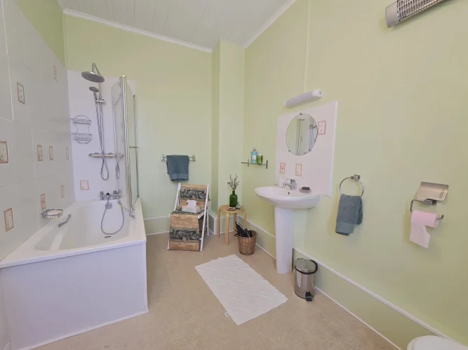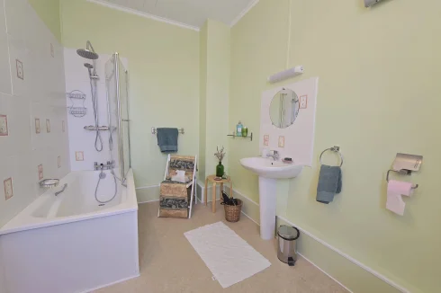 Upstairs, on the first floor there are three bedrooms and two bathrooms.