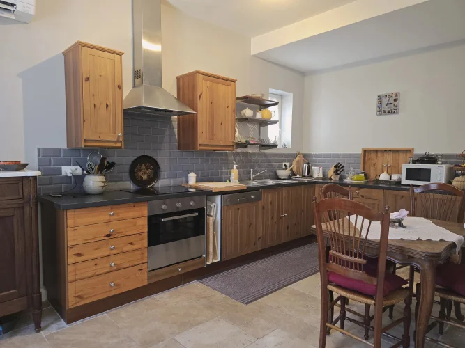 As soon as you enter, you will be charmed by the warm atmosphere of the living spaces. The ground floor features a pleasant dining room adjoining a living room, a separate kitchen, a discreet laundry room and a bathroom, all opening onto a outdoor courtyard, perfect for relaxing in the open air.