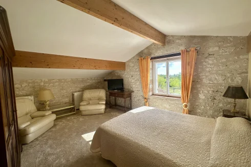 In addition to the main residence, there is a charming stone-built guest annex set over two levels. It features an open-plan kitchen and living area with a pellet stove, three bedrooms, a shower room, and a private terrace—ideal for hosting guests or generating seasonal rental income, with space to potentially add a guest swimming pool (subject to the necessary permissions).