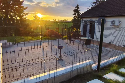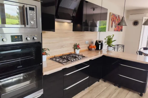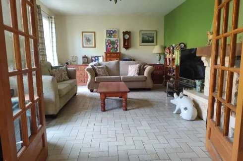 The spacious layout includes 3 bedrooms, two on the main floor and one on the lower floor. There is a bright open-plan kitchen/dining area, a cosy living room and a wood-burning inset stove, There are 2 extra rooms for office or hobbies, a full bathroom on the main floor plus a second bathroom/ washroom below.There’s also a welcoming entrance with built-in storage, a boot room, cellar, and 2 separate WCs.