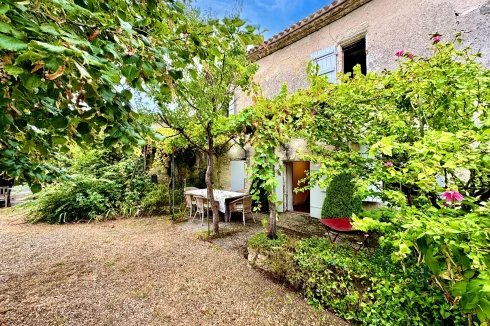 The house sits centrally within its plot, with an orchard to the front and a paddock to the rear. A vine-covered terrace provides the perfect spot to dine outdoors or take shade on warm summer evenings, adding to the property’s charm and lifestyle appeal.