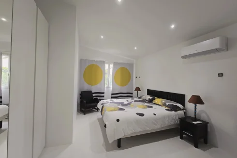 The property also has reversible air conditioning. The two entrances to the property are remotely controlled as well as the camera system.