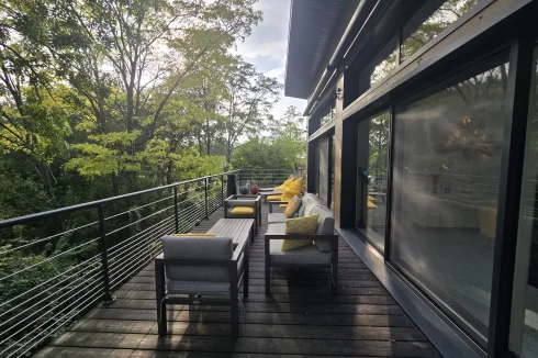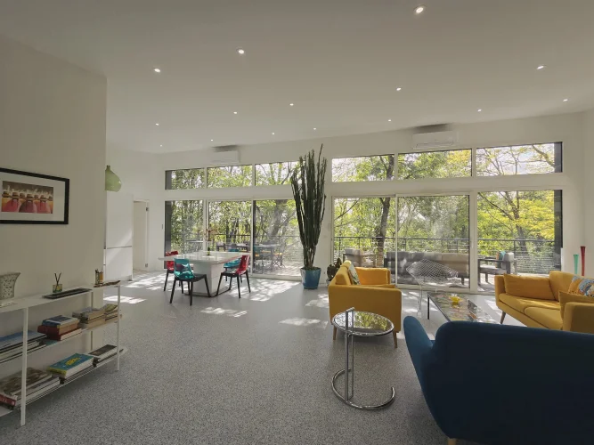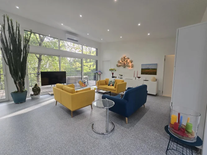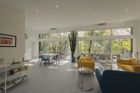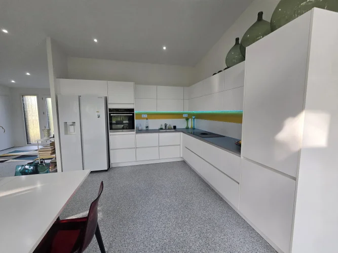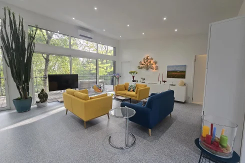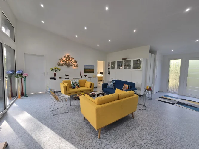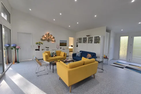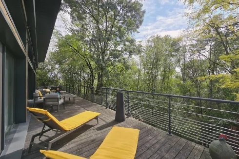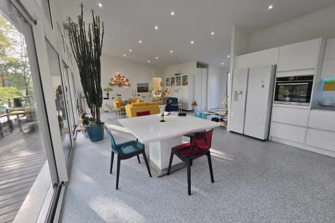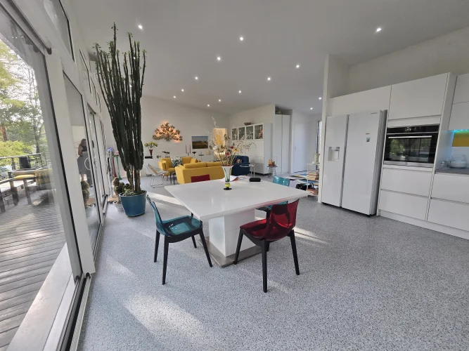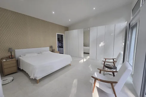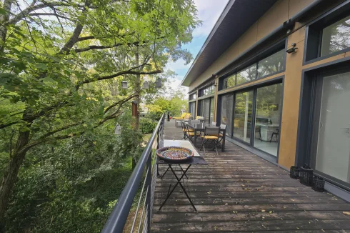 Outside, a spacious 60 m² terrace runs the entire length of the house and is equipped with electric blinds.