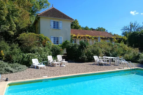 EXCLUSIVE TO BEAUX VILLAGES! We're pleased of offer to market this property which offers spacious accommodation throughout. Set in just under 1 hectare of grounds, the property comprises of living-dining room with wood burning stove with three patio door which lead onto a covered seating area which overlook the gardens and the swimming pool. Furthermore the ground floor has a well equipped kitchen, again with patio doors onto the terrace, utility area with access to the back gardens, double bedroom with en suite and two further bedrooms which share the family bathroom. To the first floor is the master bedroom with en suite bathroom.