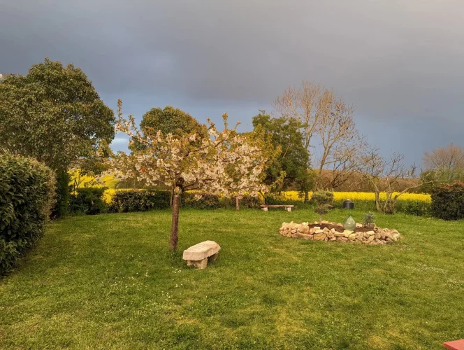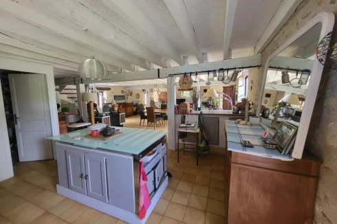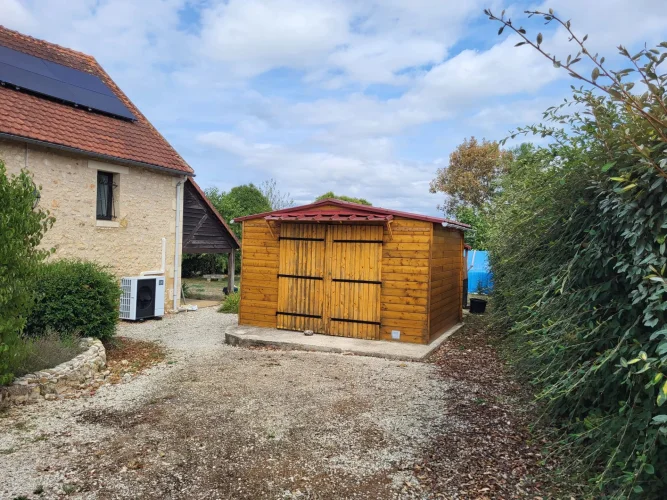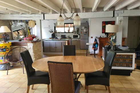 To the rear of the property there is a large covered area, ideal for apéros and dining out as the sun sets over the rolling fields behind.
