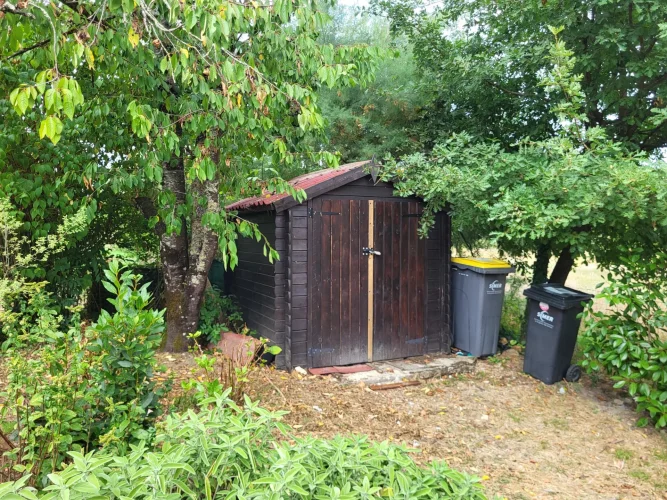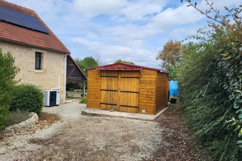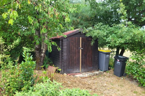 A wooden garage and outbuilding offer external storage in a garden that is an ideal size - big enough, but not too much work. The owners have had it dog proofed too!