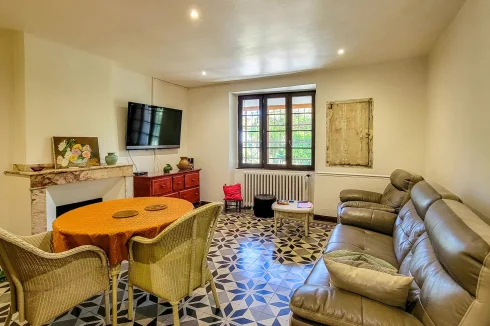 Nestled on over 5,000m² of land, the home enjoys stunning countryside views, a sun-soaked terrace, and a lovely orchard — perfect for relaxing and entertaining outdoors. The property boasts excellent energy efficiency, with a log-burning stove, air-sourced heat pump, and double-glazed wooden windows ensuring comfort throughout the seasons.