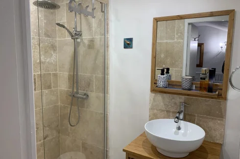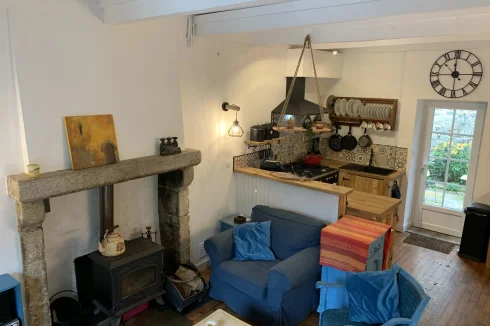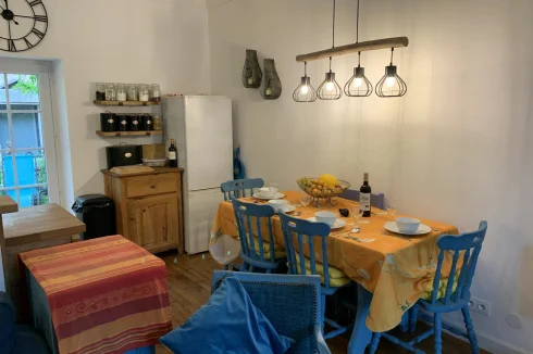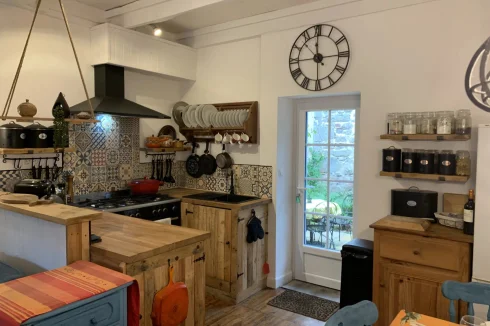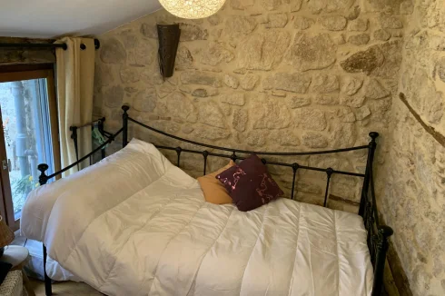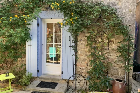 The main house offers a bright and spacious open-plan living/kitchen/dining area with a wood-burning stove for cosy winter evenings, and is fully double-glazed throughout. Upstairs are two double bedrooms, each with its own WC, and one benefitting from an en suite shower room. To the rear, a charming private terrace provides the perfect outdoor retreat and gives access to the self-contained annexe, complete with mezzanine bedroom and shower room/WC – ideal for visiting friends or family.