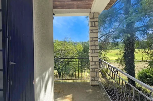 The accommodation comprises a very large sitting room, with triple aspect windows onto the surrounding countryside, a fully fitted kitchen, five bedrooms and a bathroom. The sitting room is bordered on the outside by a wrap around balcony.