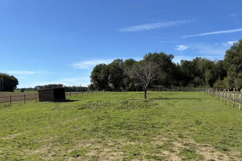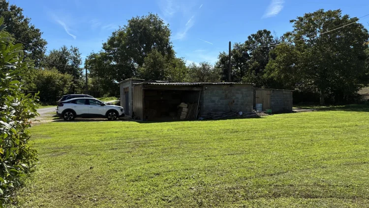 Outside a fenced garden around the property. Outbuildings for cars, machinery, and the current owners have storage for hay, tack, and tools.