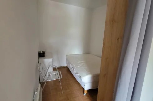A first apartment, with a living area of 38.41 m², located on the 2nd floor of the building, consists of an entrance opening onto a spacious living room with an integrated kitchenette. A hallway with a built-in wardrobe leads to a bathroom with WC and a bedroom. The apartment features double-glazed windows and electric heating.