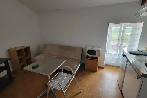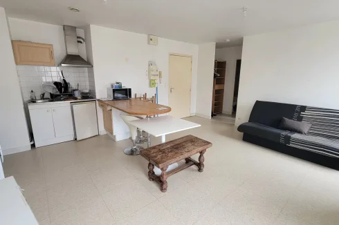 The second studio, with a living area of 25.61 m², offers an entrance with a built-in wardrobe leading to a pleasant living room with kitchenette and a shower room with WC.