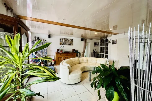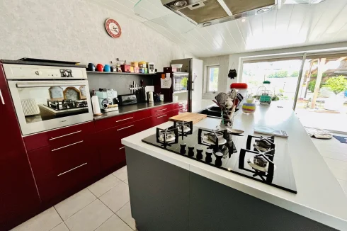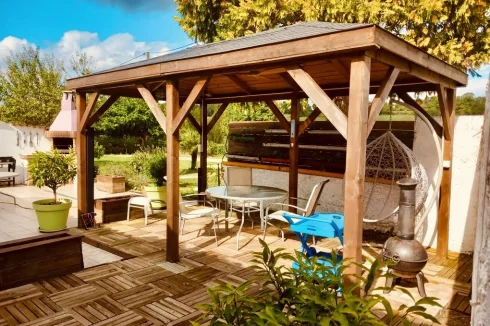 The property sits on 1,600 m² of enclosed gardens, planted with fruit trees including pear, plum, cherry, peach, grape and blackberry. Outdoor living is a real highlight, with a 9m x 4m in-ground swimming pool, sunny terrace complete with barbecue, and a shaded pergola. A large hangar provides ample space for several vehicles or storage.