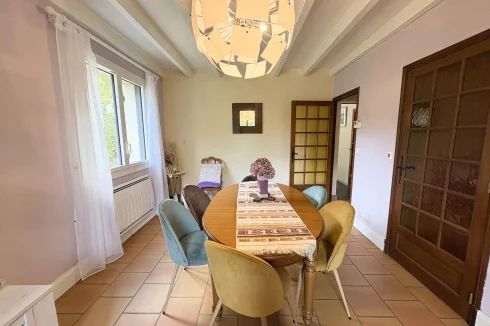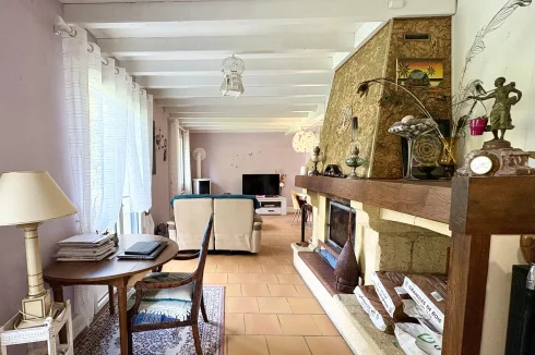 Situated on an expansive 5,765 m² plot, this versatile property offers a peaceful rural setting with 150 m² of living space in the main residence, five bedrooms, and two outbuildings ready for transformation.
