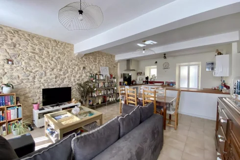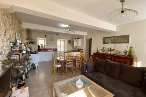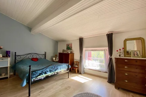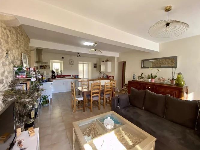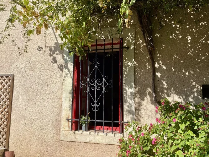 Recently renovated with 85m² of living space over two levels. South-facing double glazed windows overlook gardens and hills. Street level: spacious living room with open-plan kitchen, plus large bedroom with shower room/WC. Upstairs: second bedroom 18m2 with shower room/WC, plus large attic offering potential for a third bedroom (subject to necessary permissions). Garden level: large garage and utility room with WC (possible renovation project - subject to permissions). Enclosed south-facing garden with mulberry trees offering shade for summer dining. An additional non-adjacent plot of land included, ideal for a kitchen garden with its own well. Perfect as a permanent home or holiday retreat.