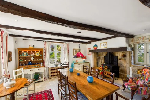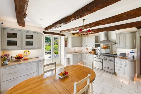 At the heart of the estate, the main residence is set within an enclosed courtyard of character buildings, including on the ground floor, a generous kitchen diner that opens onto a covered terrace, the perfect setting for al fresco dining with views across the swimming pool and surrounding land. Complementary living spaces include a utility room, formal dining room, welcoming entrance hall, lounge, TV room, music room. The ancilliary buildings in the courtyard include a boiler room, wood store, and possible workshop space.