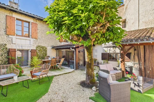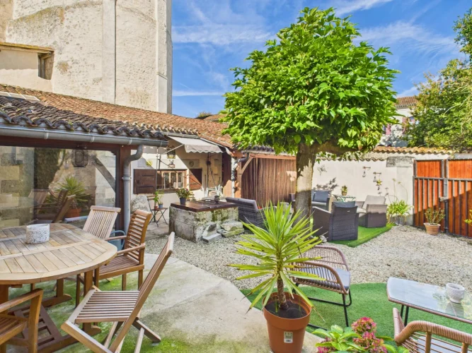 Outside is a pretty courtyard garden with barn, workshop and well, plus a further plot of land of approx 500m² a little way from the property. Double glazing and fibre optique.