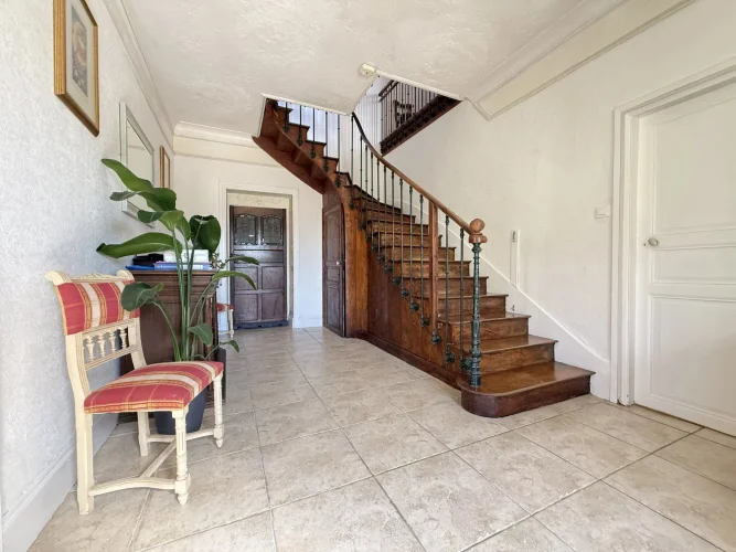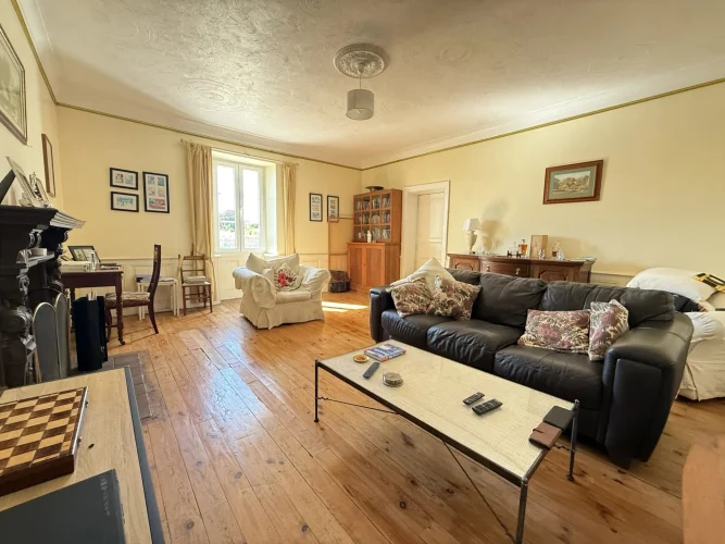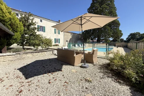 The property is set on a lovely enclosed parcel of land with mature trees, a hangar ideal for summer barbecues, and a heated swimming pool — perfect for relaxing or entertaining.