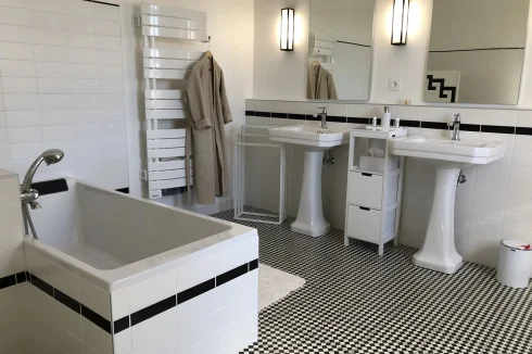 The main staircase is up from the entrance hall. On the first floor, we have 4 bedrooms, 2 with en suite bathrooms and 2 with en suite shower rooms. To the far end of the corridor you will find the parental suite with bedroom, shower room, dressing room and bathroom and a door leading to the back stairs. Also on this floor is an Office and the stairs up to the attic, which consists of 2 rooms in the eaves.