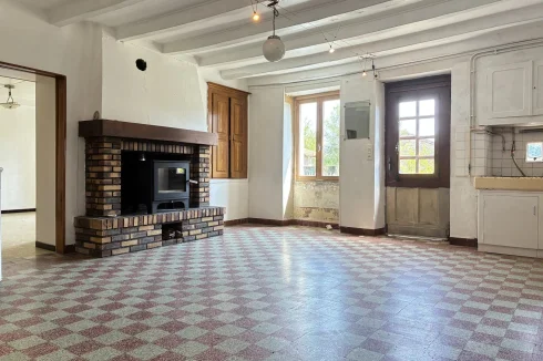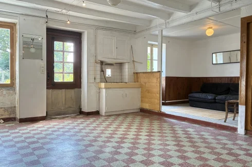 The 1300m² plot includes a well and a large chicken coop, and overlooks meadows. Overall a good sized property with potential, immediately habitable and in a good location!