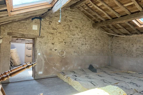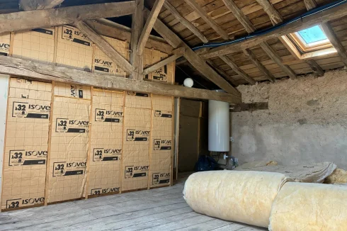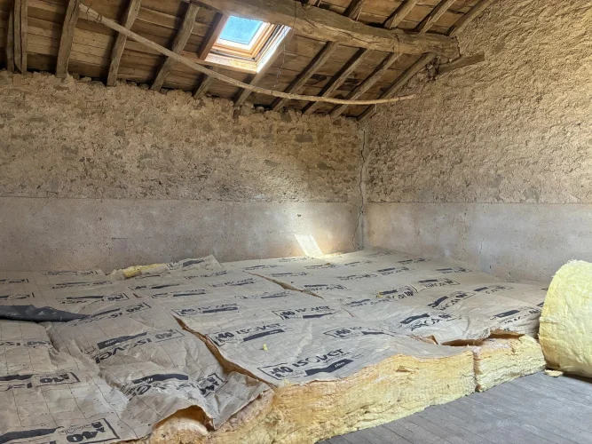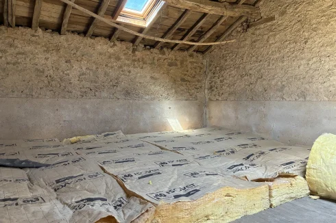 Currently, glass fibre insulation had been rolled out on the attic floor to keep the ground floor cosy. Several windows are already double-glazed.