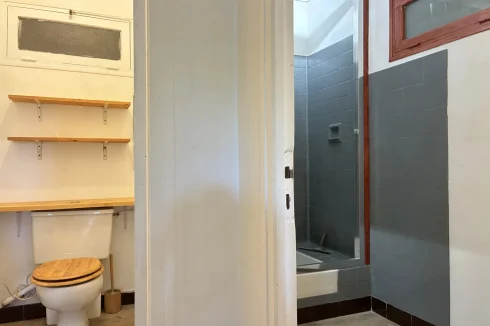 The entrance opens into a large 36m² living room with corner kitchen, and a recent wood-burning stove. Also on the ground floor there is a large 26m² living room or bedroom, a shower room with separate toilet, hallway with ample storage space and a 15m² pantry.