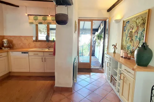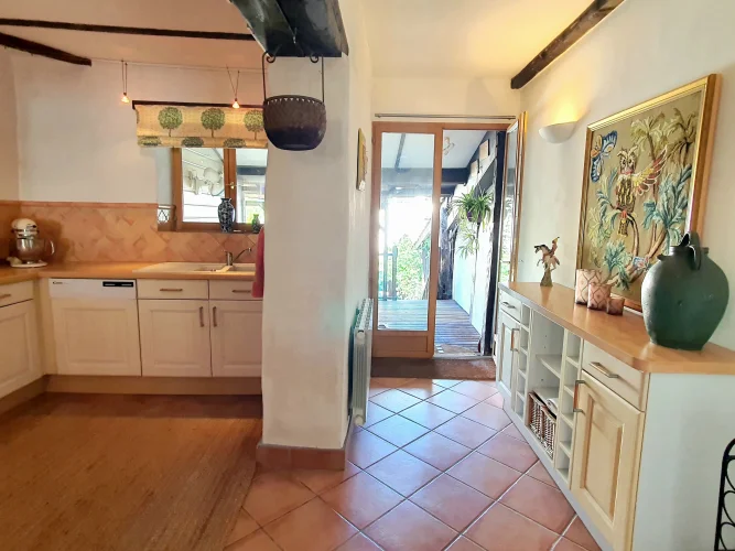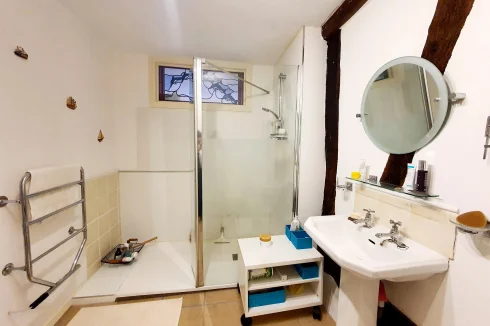 Tucked away on a quiet street in the thriving historic village of Duras, this pretty property has retained its original character with lovely feature fireplaces and stone walls whilst enjoying the modern benefits of a spacious open plan layout and a well equipped kitchen. Upstairs there are two good sized bedrooms and a large shower room, while the top floor offers a third bedroom that could equally serve as a home office or creative space.