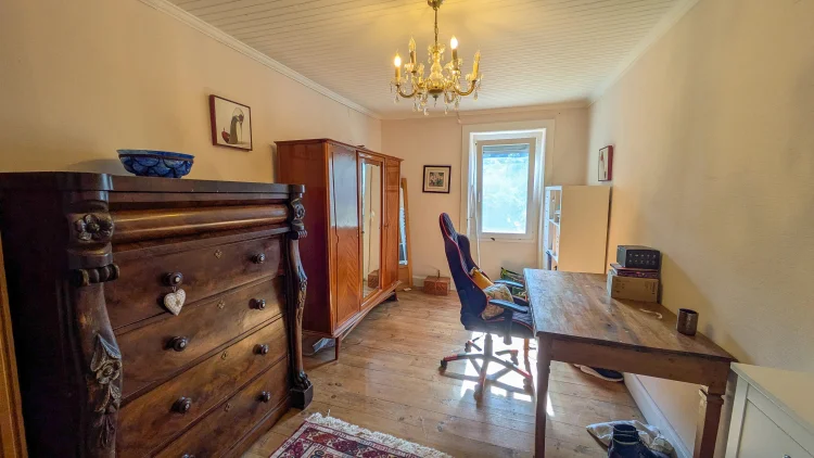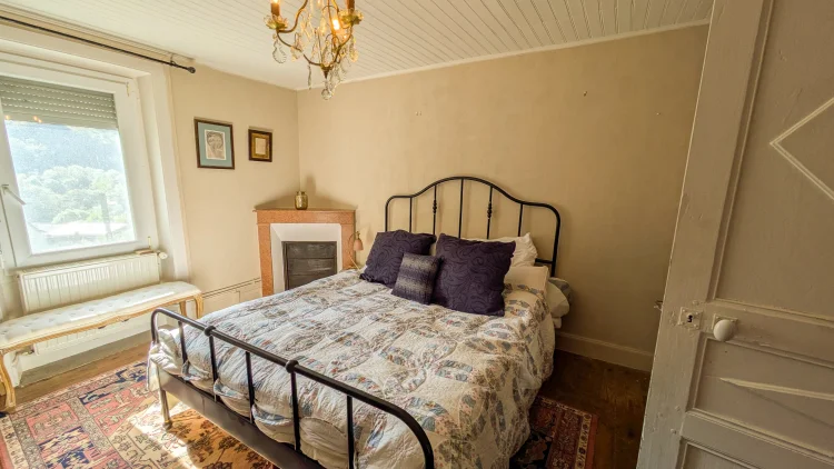 The property also includes an attached garden, a separate village parcel with direct river access, and a wooded plot, offering plenty of outdoor space and variety.