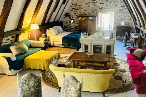 Arranged around a courtyard behind wrought-iron gates, the buildings combine exposed stone walls, beams and original features with modern comforts such as double glazing, high-speed internet, and a good energy rating - traditional character with modern convenience. The two maison d'amis were thoughtfully converted from traditional stone barns and offer independent units with rental possibilities (possible gite, subject to necessary permissions)