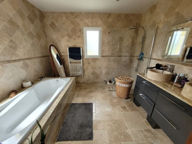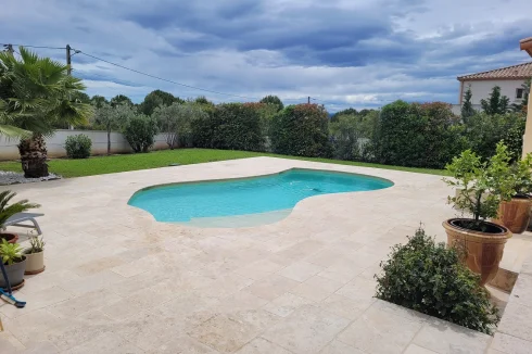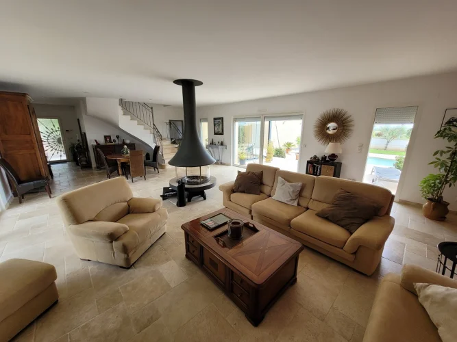 Looking for a haven of tranquility, you will be seduced by this superb detached villa (2010), nestled in a peaceful and sunny setting on the edge of a charming village. Built with high-quality materials such as marble and travertine, the residence boasts elegancy in a modern design. The natural light comes bathing in through the large windows, providing lovely views over the surrounding countryside. A comfortable garden extends the living pleasure to the outside, with a beautiful bean-shaped swimming pool.