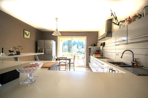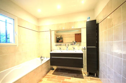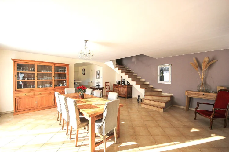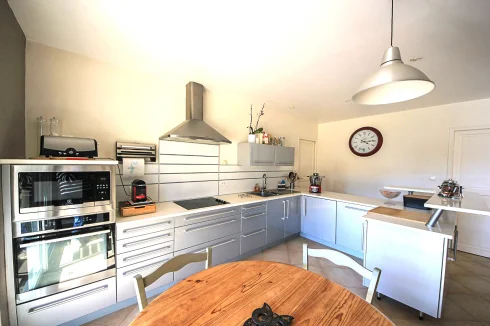 On the ground floor, the spacious living room is bathed in natural light, and opens onto the garden. There is a lovely modern kitchen and a generously sized, bright dining area. There are four bedrooms of which two are on the ground floor, and two on the first floor, and there is both a shower room and a bathroom on each floor. The property also benefits from a laundry room and a garage. Outside, the large gardens are landscaped, with a lovely swimming pool. The property benefits from an independent apartment of 30m2.